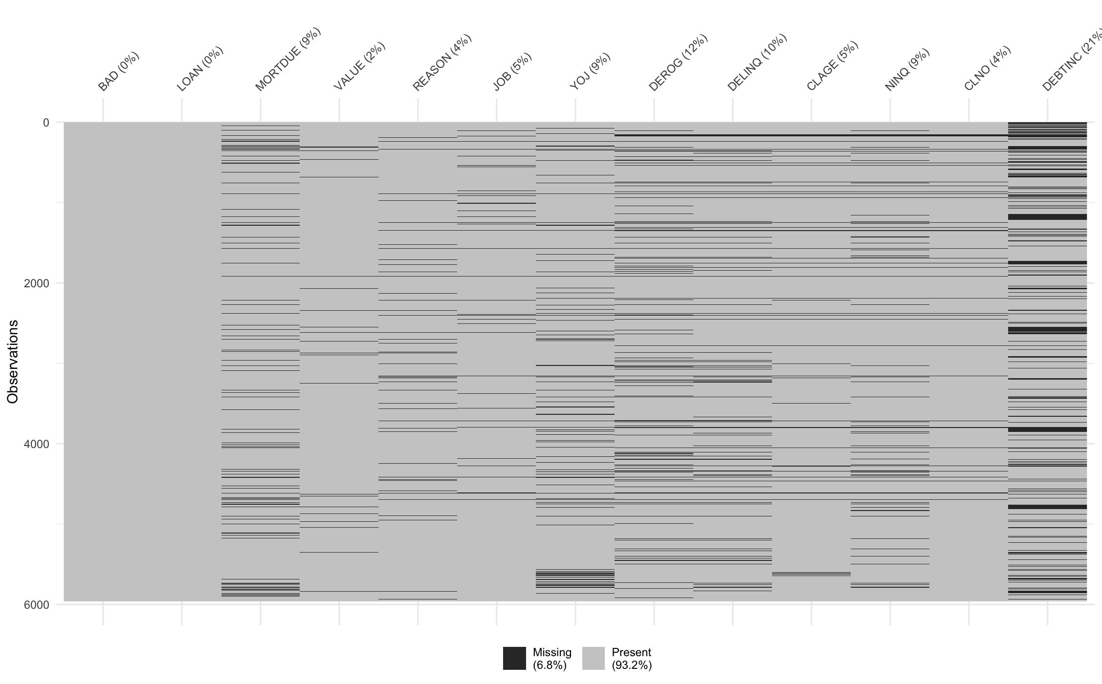 Given the nature of household data, missing values are unavoidable and may even carry informative value. Therefore, appropriate imputation is essential to prevent bias in the model. Additionally, to ensure the reproducibility of our scorecard, the imputation algorithm will be included as part of this project’s deliverables.